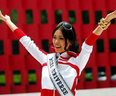 Miss Universe 2007: Newly elected Miss Universe 2007, Japanese Riyo Mori, outside her hotel in Mexico