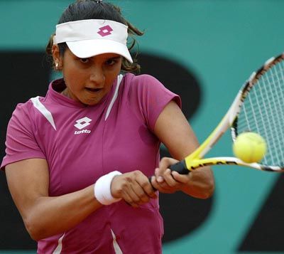 Sania Advances: Sania Mirza of India hits a backhand during her 1st round match against Italian Alberta Brianti at the French Open in Roland Garros, Paris, 30 May 2007.