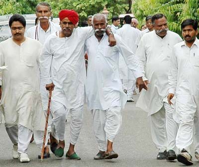 Gujjar leaders arrives for talks: Colonel Kirori Singh Bainsla, spreadheading the Gurjjar agitation in Rajasthan,