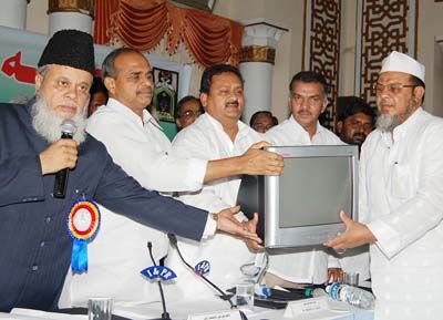 On modernisation path: Chief Minister Y.S Rajasehkar Reddy presenting free computers to heads of Deeni Madarsas (Muslim religious