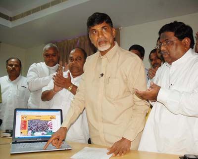 TDP for NRIs: TDP supremo N.Chandra babu Naidu launching the NRIs website at TDP state office in Hyderabad on Saturday.