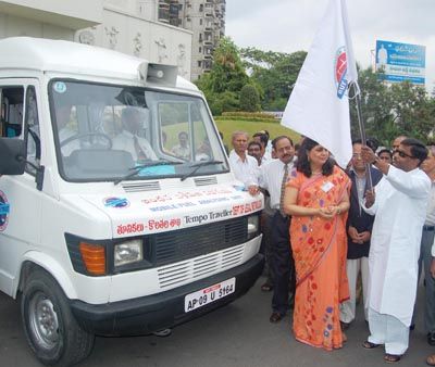 Movement on adultration: AP state minister for Civil Supplies K.V Krishna Reddy flaged - off the newly introduced mobile fuel analysing unit vehicle to check adulteration in petrol pumps at a programme held in Ravindra Bharati in Hyderabad on Monday.