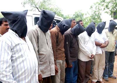 Kidnappers held: Notorious kidnapping gang arrested by Cyberabad Police is being presented in front of media persons by poice at Hyderabad on Tuesday. Huge amount of cash and arms were recovered from the gang.
