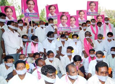 No voice: TRS activists staging a protest demonstration alleging state governments lack diasical approach in dealing with GO 610 at Hyderabad on Tuesday.