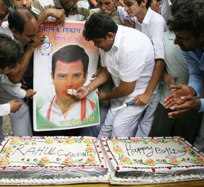 Rahul turns 37: Indian Youth Congress supporters cut a huge birthday cake during celebrations for the 37th birthday of Rahul Gandhi.