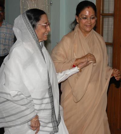 Raje meets Pratibha: Rajasthan Governor, Presidential candidate Pratibha Patil met Rajasthan Chief Minister Vasundhara Raje at Rajbhawan in Jaipur on Tuesday.