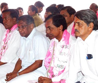 Hungry for 610: Telangana Rastra Samithi president K. Chandrasehkar Rao and others participated in a mass hunger strike demanding implementation of G.O.610 in Hyderabad on Wednesday.