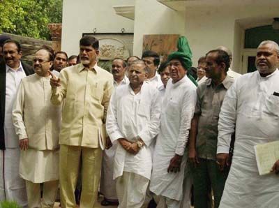 Front leader photo call: Members of the newly formed UNPA after their meeting in New Delhi on Wednesday.