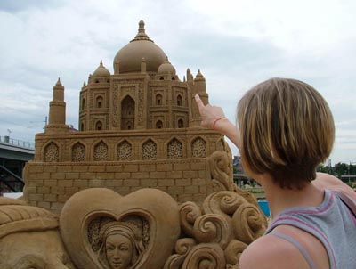 Taj in Berlin: The Taj Mahal created in sand by sand artist Sudarshan Pattnaik at the ongoing 5th Berlin International Sand Sculpture Championship & Festival in Germany.