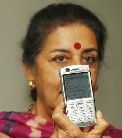 Vote for Taj: Union Minister of Tourism and Culture Ambika Soni casting her vote for Taj Mahal by SMS for its inclusion in new seven wonders of the world, in New Delhi on Friday.