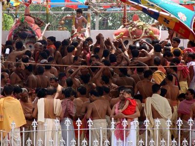 Jagannath temple in Puri on Saturday. A total 108 pitchers of aromatic and herbal water was used in the ceremony