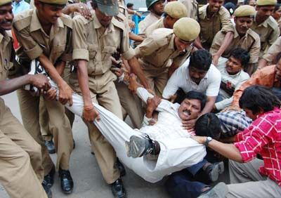 Protest and get arrested: Police arresting the CPI and CPM activists staging a picketing at Hyderabad District Collectorate demanding allotment of house sites to poor on Saturday.