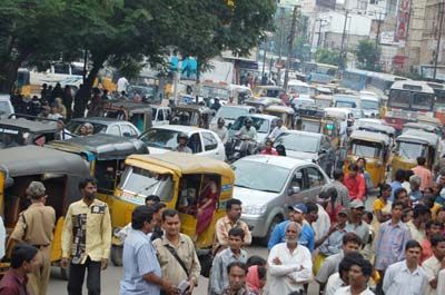 Traffic at it worse: Traffic jams have become order of the day in Hyderabad. When it rains the traffic woes doubles with rain water
