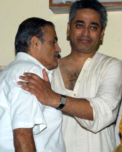 Consolation!: Former cricketer Nari Contractor consoling Rajdeep Sardesai, son of former cricketer Dilip Sardesai who passed away on Monday night, during the funeral in Mumbai on Tuesday.