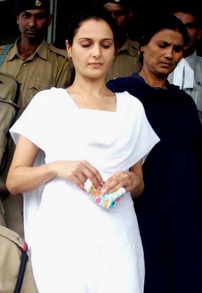 Shuttling between court and jail: Actor and underworld Don Abu Salem`s girlfriend Monica Bedi comes out of the court after hearing in connection with fake passport case in Bhopal on Tuesday.