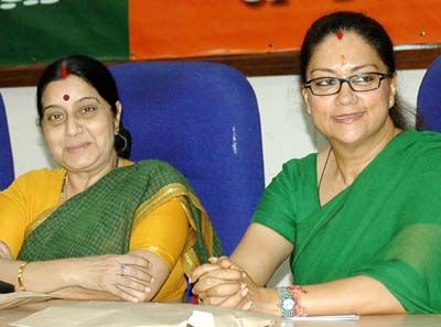 Sushma and Raje: Senior BJP leader Sushma Swaraj with Rajasthan Chief Minister Vasundhara Raje at the Rajasthan legislature Party meeting on the presidential election issue, in Jaipur on Wednesday.