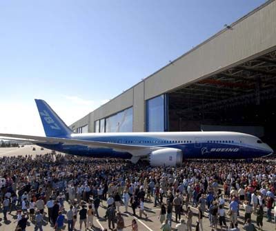 into its widebody assembly plant in Everett, Washington, for the plane s extravagant premiere. The 787, Boeing s