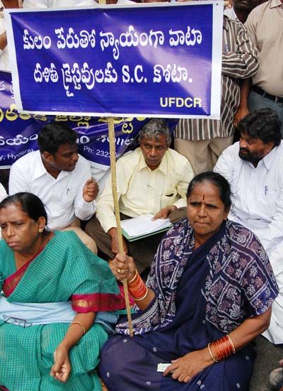 Christians for quota: Scheduled Castes converted Christians hold Dharna at Ranga Reddy District Collectorate demanding reservations for SC converted Christians in Hyderabad on Monday.