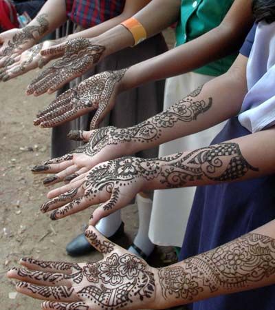 Designs at hand: Students participating Mehandi competetion at the inter school fiesta Horlicks Wiz Kids-2007 , in Chennai on Thursday.