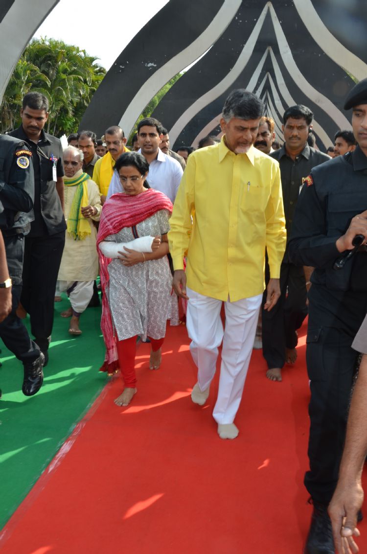 TDP president and Andhra Pradesh Chief Minister Nara Chandrababu Naidu, NTR son Nandamuri Balakrishna and other TDP leaders paying tributes to TDP founder and former Chief Minister N T Rama Rao on his birthday at NTR Ghat in Hyderaba on 28th May 2015.