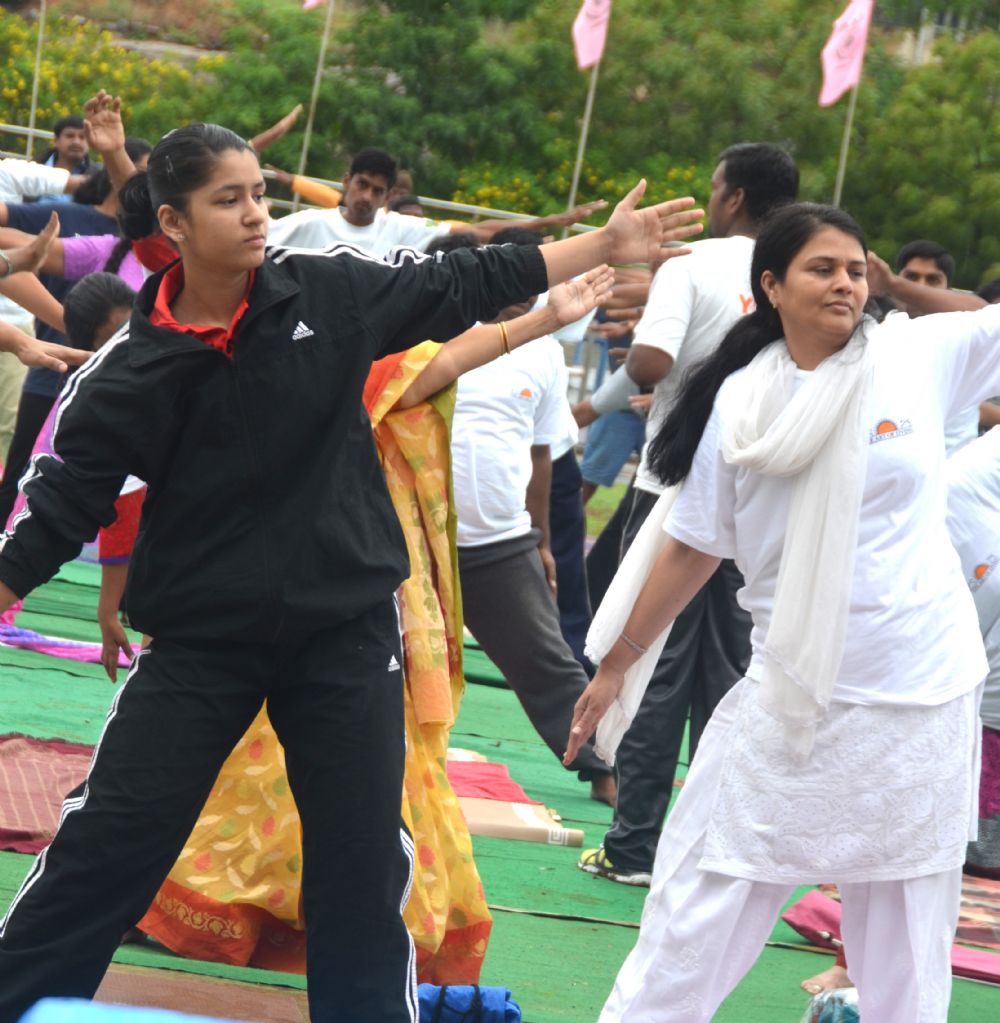 The first International Yoga Day celebrations got off to a rousing start in Hyderabad on Sunday.