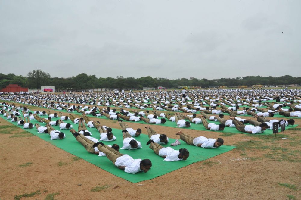 The first International Yoga Day celebrations got off to a rousing start in Hyderabad on Sunday.