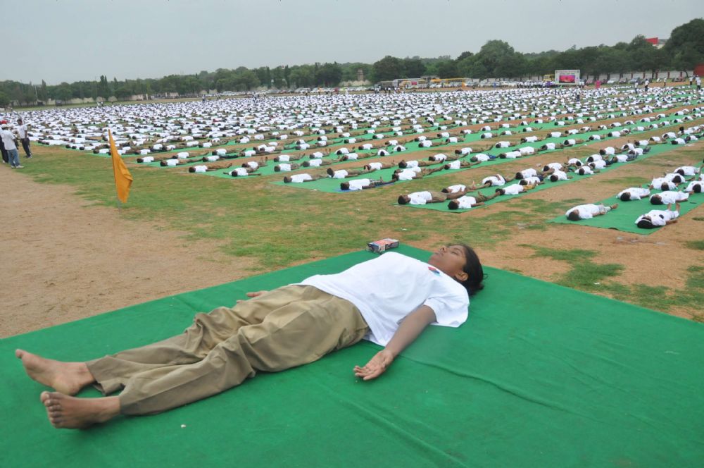 The first International Yoga Day celebrations got off to a rousing start in Hyderabad on Sunday.