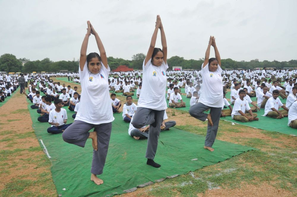 The first International Yoga Day celebrations got off to a rousing start in Hyderabad on Sunday.
