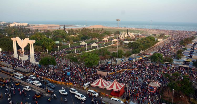 The last day of the Pongal festivities Kaanum Pongal celebrated in Tamilnadu with great enthusiasm and A large number of people thronged to the Marina Beach and nearest temples on 16th January 2017.