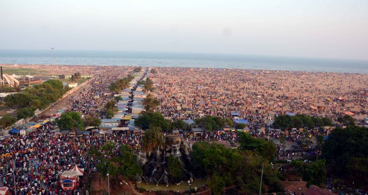 The last day of the Pongal festivities Kaanum Pongal celebrated in Tamilnadu with great enthusiasm and A large number of people thronged to the Marina Beach and nearest temples on 16th January 2017.