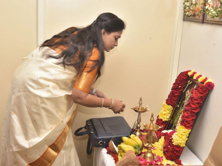 AP Home Minister Vangalapudi Anita performing puja to 2026 budget papers before presenting budget in Legislative Councilon Saturday.