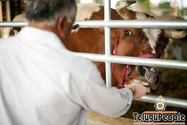 A Hindu pilgrim feeds a sacred cow at the Bhaktivedanta Manor Krishna Temple, in Watford, north of London, on August 16, 2009, as it holds an open day for pilgrims to celebrate 'Janmashtami' - the birth of Lord Krishna. Over 65,000 pilgrims and guests were expected to visit Bhaktivedanta Manor Krishna Temple during the three day festival to celebrate Janmashtami. This year's theme for the Krishna festival is the symbiotic relationship that exists between man, cows and the environment.