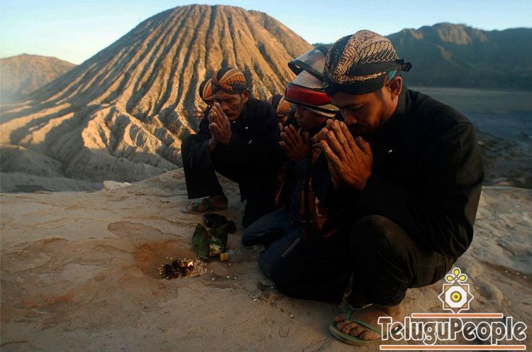 Hindu worshippers pray during the Kasada festival at Mount Bromo in Indonesia's East Java province September 6, 2009. Villagers and worshippers throw offerings into the volcanic crater of Mount Bromo during the festival to give thanks to the Hindu gods for ensuring their safety and prosperity.