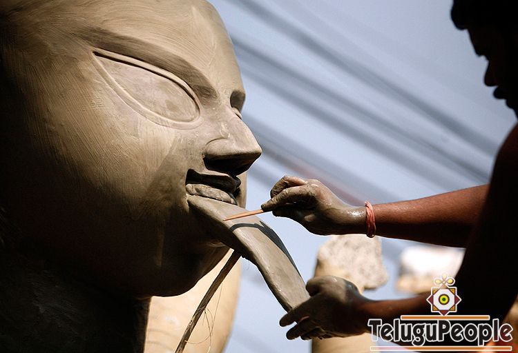 An artisan applies finishing touches to an idol of Hindu Goddess Kali at a workshop in the eastern Indian city of Kolkata on October 12th, 2009. Idols of the Hindu goddess of power Kali are worshipped during the annual Hindu festival of lights, Diwali.